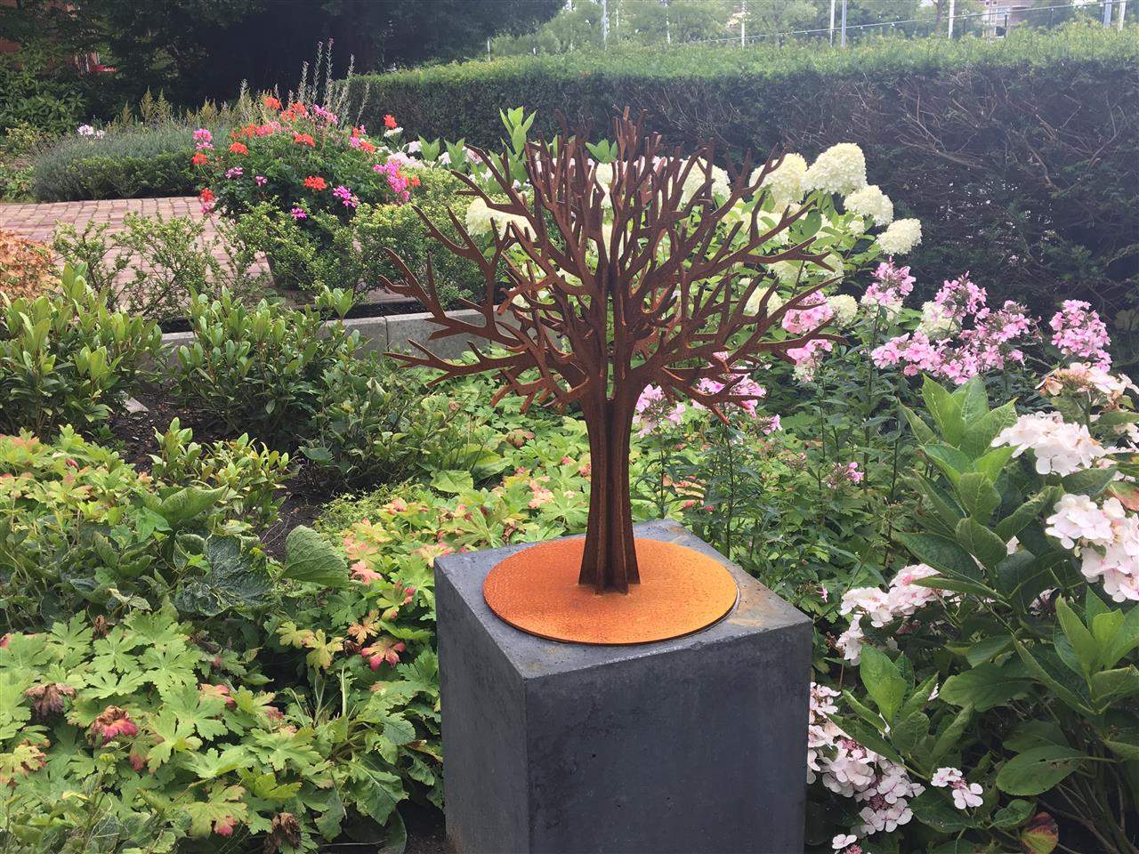 Ein Gedenkbaum aus stimmungsvollem, braun gefärbtem Cortenstahl ist für Friedhöfe und Krematorien ein einzigartiges Objekt.