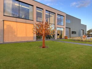 Anlässlich der Eröffnung seines neuen Hauptsitzes errichtete Orthometals einen Gedenkbaum.