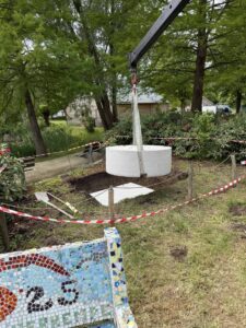Auf dem Gelände wurde ein schönes Denkmal für die Mitbewohner mit Behinderungen der Lebens- und Arbeidsgemeinschaft Overkempe errichtet. Gedenksteine mit den Namen der verstorbenen Bewohner wurden auf Kürbisblättern im Wasser platziert. Ergänzend zu diesem Denkmal hat Overkempe einen 220 cm hohen Gedenkbaum gepflanzt.