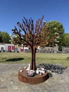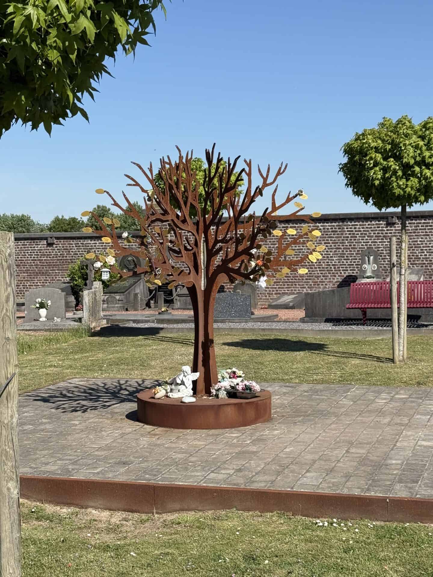 Auf dem neu angelegten Friedhof des Stadtfriedhofs in Zaventem wurde ein Gedenkbaum aufgestellt.