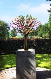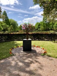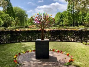 Die Namen der Sternenkinder sind auf regenbogenfarbenen Plexiglasblättern eingraviert.