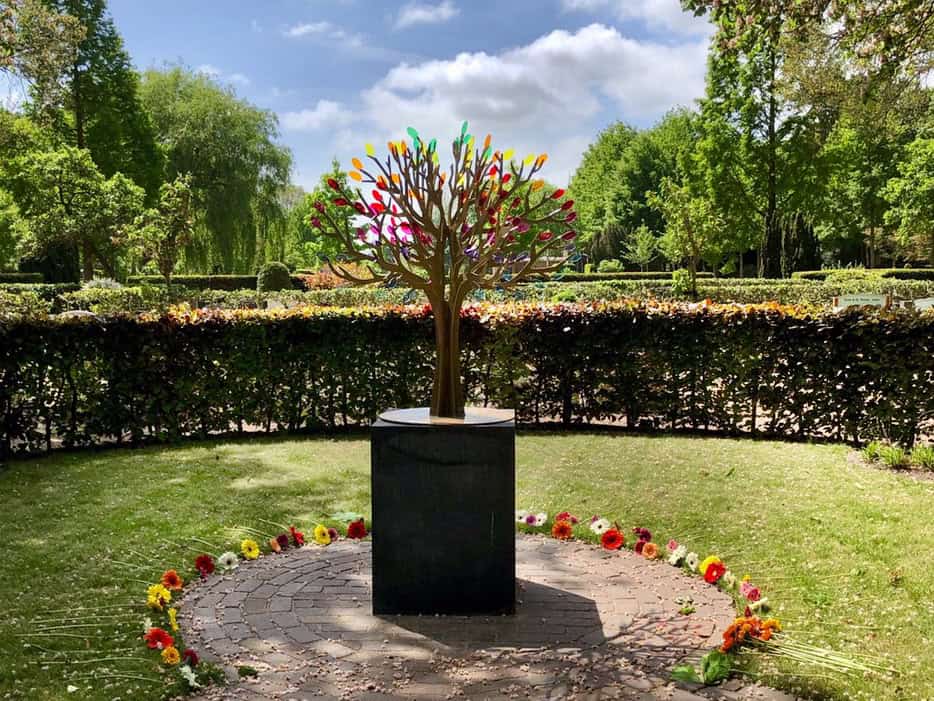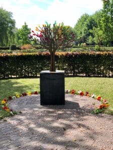 Umgeben von einer Hecke unter vier alten Eichen wurde ein einzigartiges und wunderschönes Denkmal für Sternenkinder geschaffen.