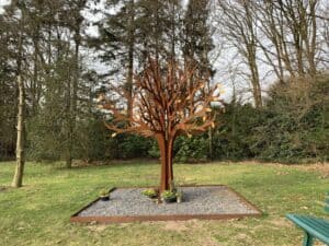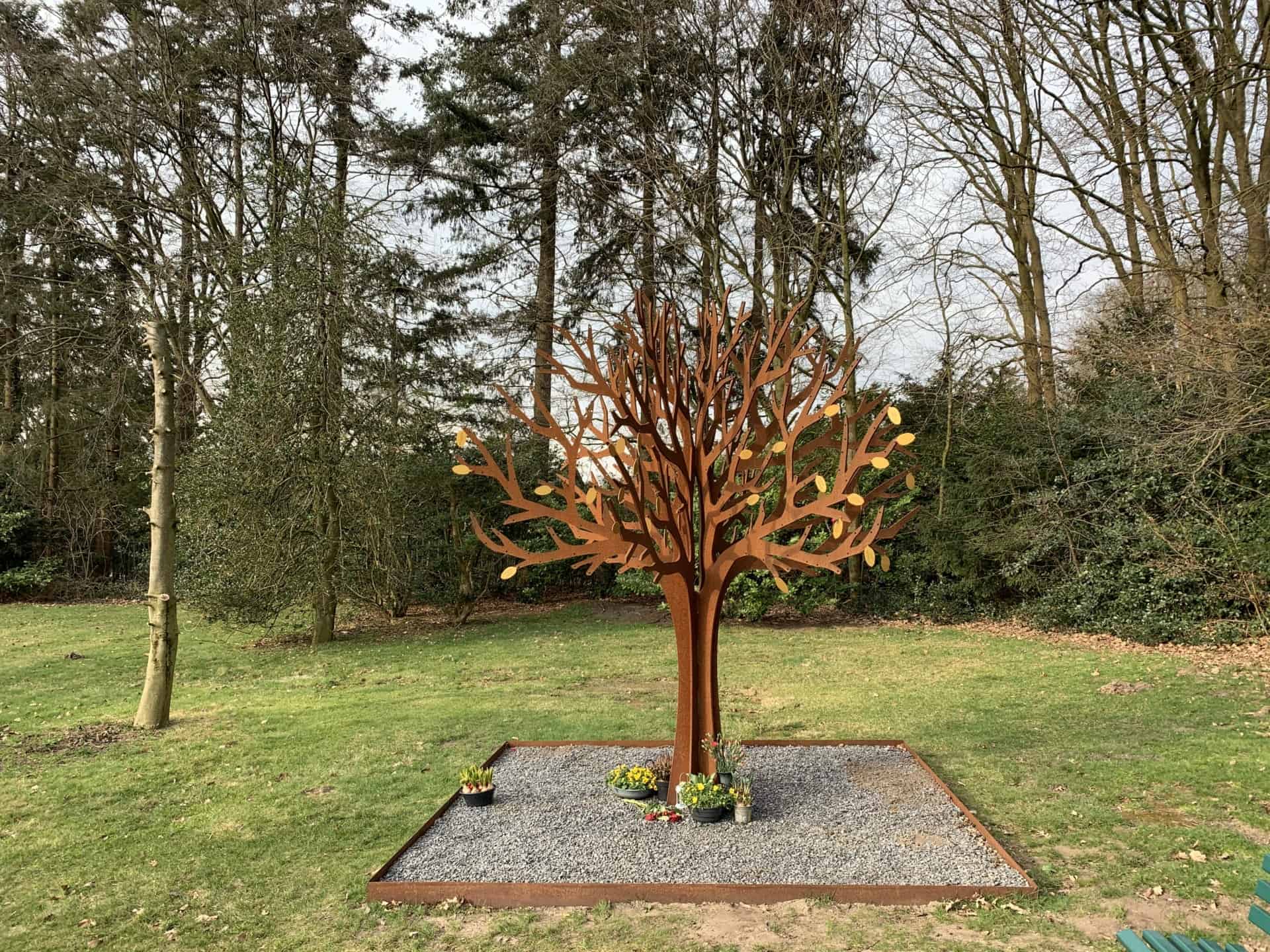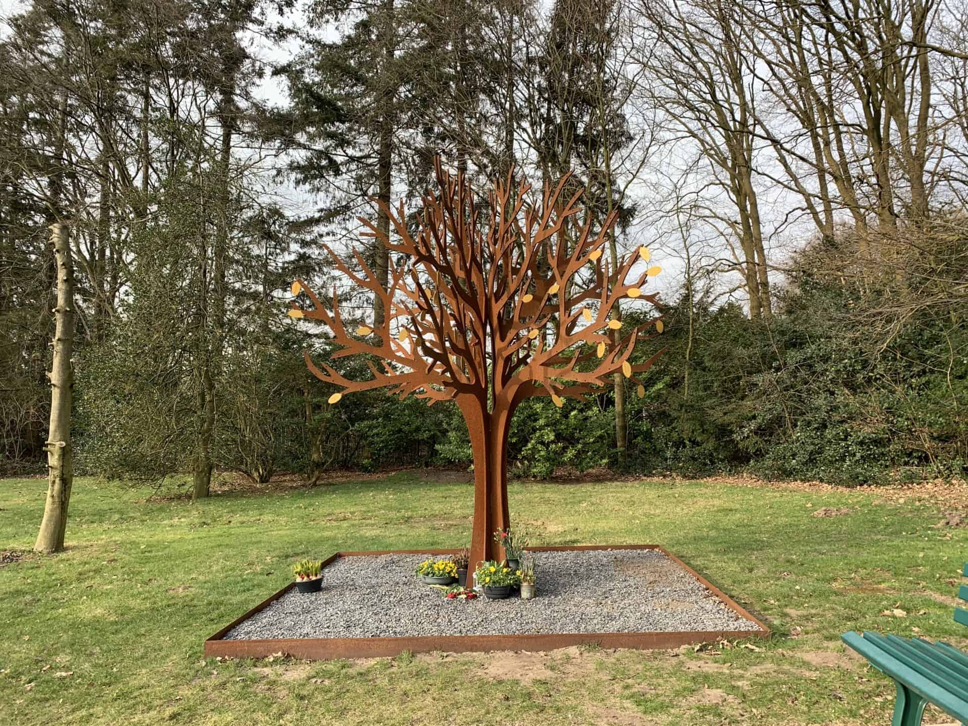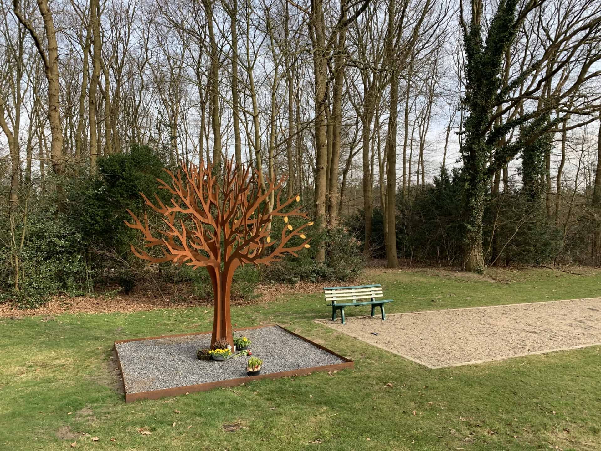 Neben dem Streufeld Zuiderhof im Eikenbos steht ein Gedenkbaum. Nach der Streuung können Angehörige ein graviertes Blatt in den Baum hängen.