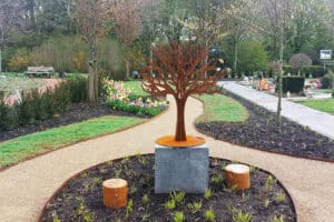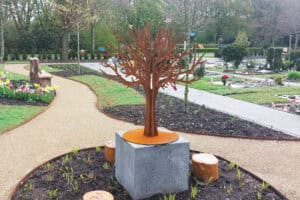 In der Mitte des Hofes wurde ein Gedenkbaum für Sternenkinder (Frühgeborene und verstorbene Kinder) aufgestellt.