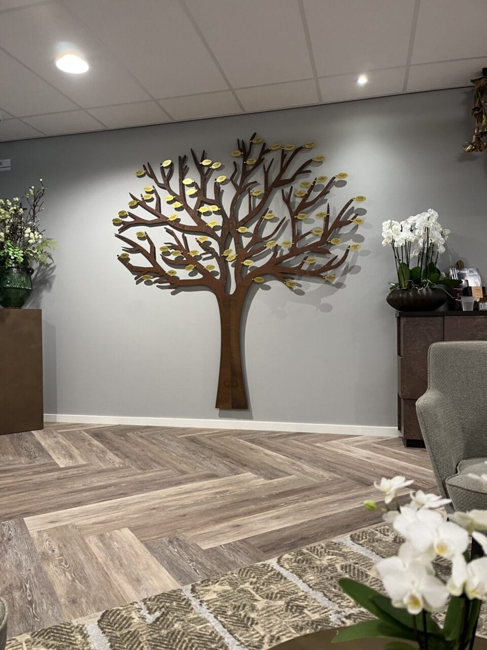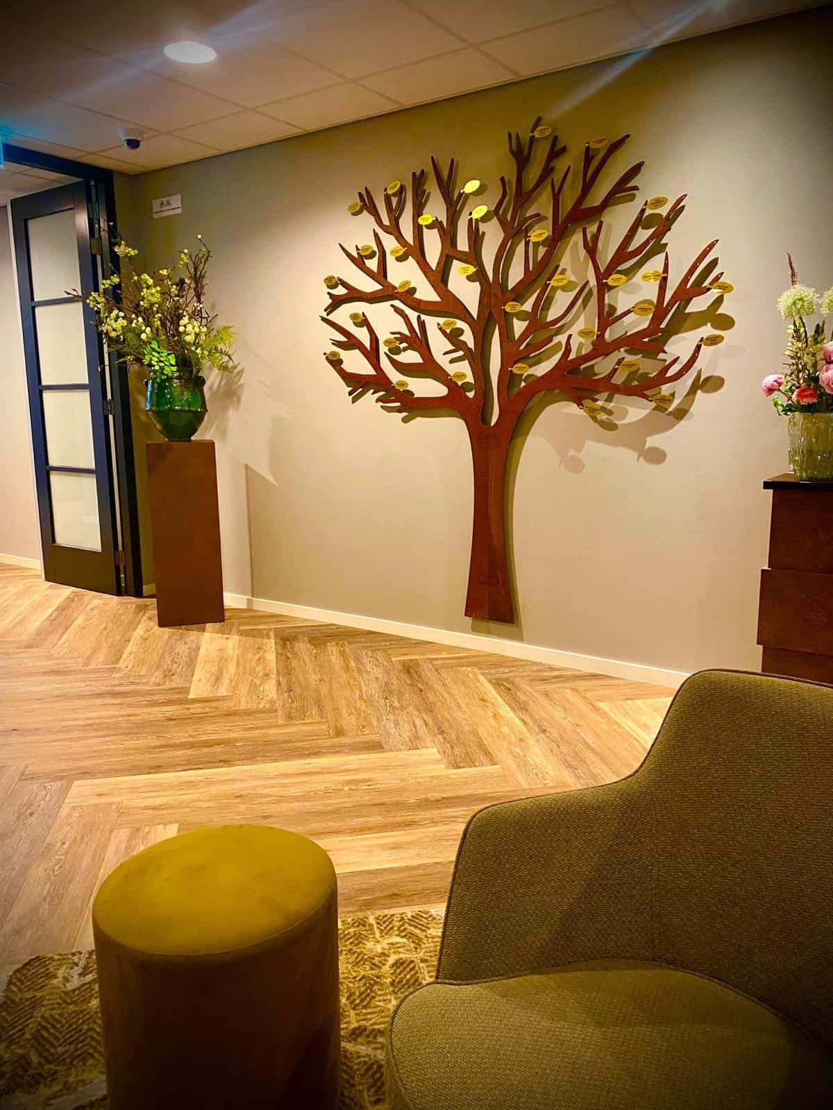 Im Frühjahr 2023 wurde der erste Gedenkbaum im Afscheidshuis a/d IJssel, dem Zuhause von Anton und Monique Maurik, aufgestellt. Der Cortenstahl fügt sich harmonisch in die Einrichtung des Bestattungsinstituts ein.