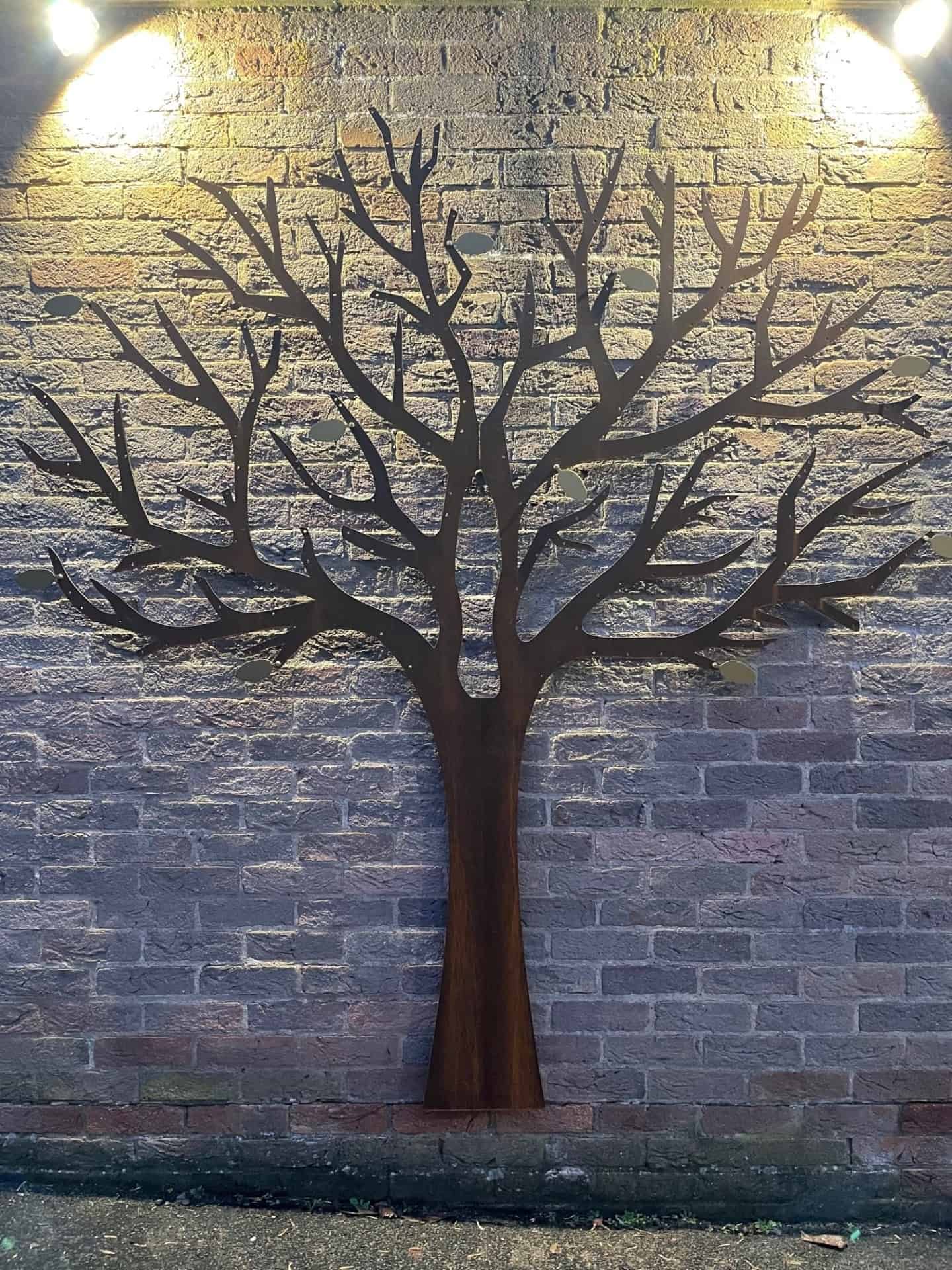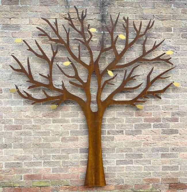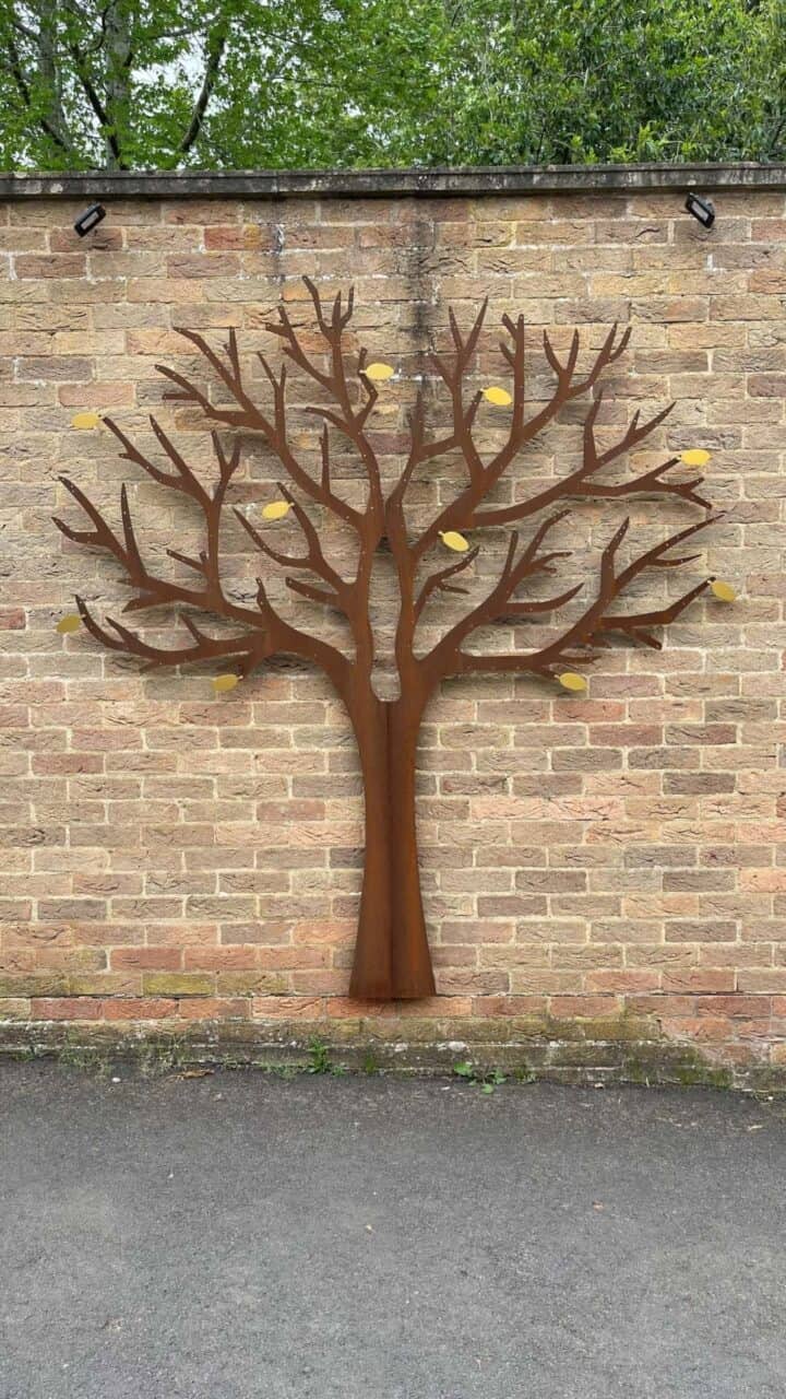 „Unser neuer Gedenkbaum zur Wandmontage bietet Ihnen ein schlichtes, blattförmiges Denkmal, mit dem Sie Ihren geliebten Verstorbenen ehren können“.