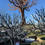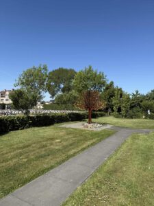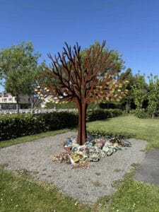 Der Gedenkbaum aus Cortenstahl ist 320 cm hoch.